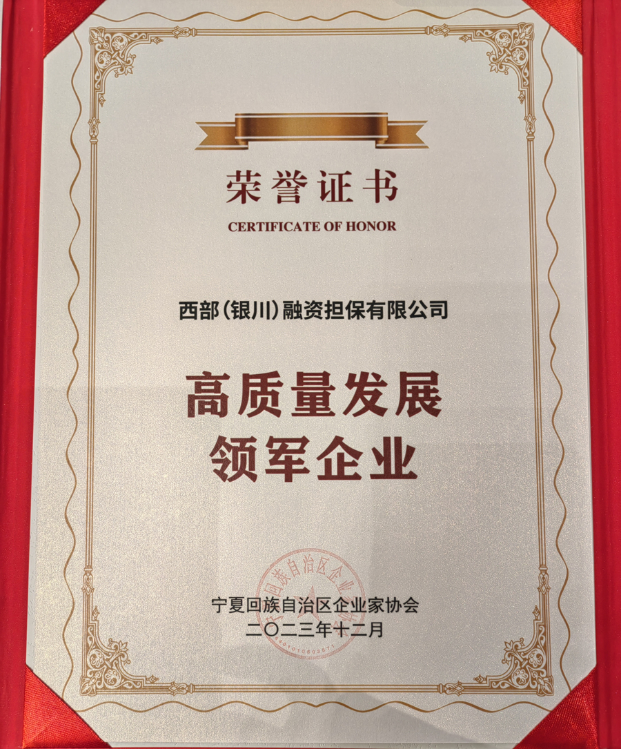 西部(銀川)融資擔保有限公司是經銀川市委、政府批準并出資設立的以擔保為主業(yè)的專業(yè)金融服務機構,于2014年7月正式掛牌成立,注冊資本45.87億元,是AA+級擔保機構,為中國銀行間市場交易商協會會員單位,中國融資擔保業(yè)協會副會長單位,累計七次蟬聯國內金融領域最權威的《金融時報》“金龍獎,累計四年榮獲“自治區金融服務創(chuàng)新獎,憑借創(chuàng)新優(yōu)勢、規(guī)模優(yōu)勢、品牌優(yōu)勢躋身國內擔保行業(yè)前列,成為國內具有核心競爭力和品牌影響力的擔保機構。